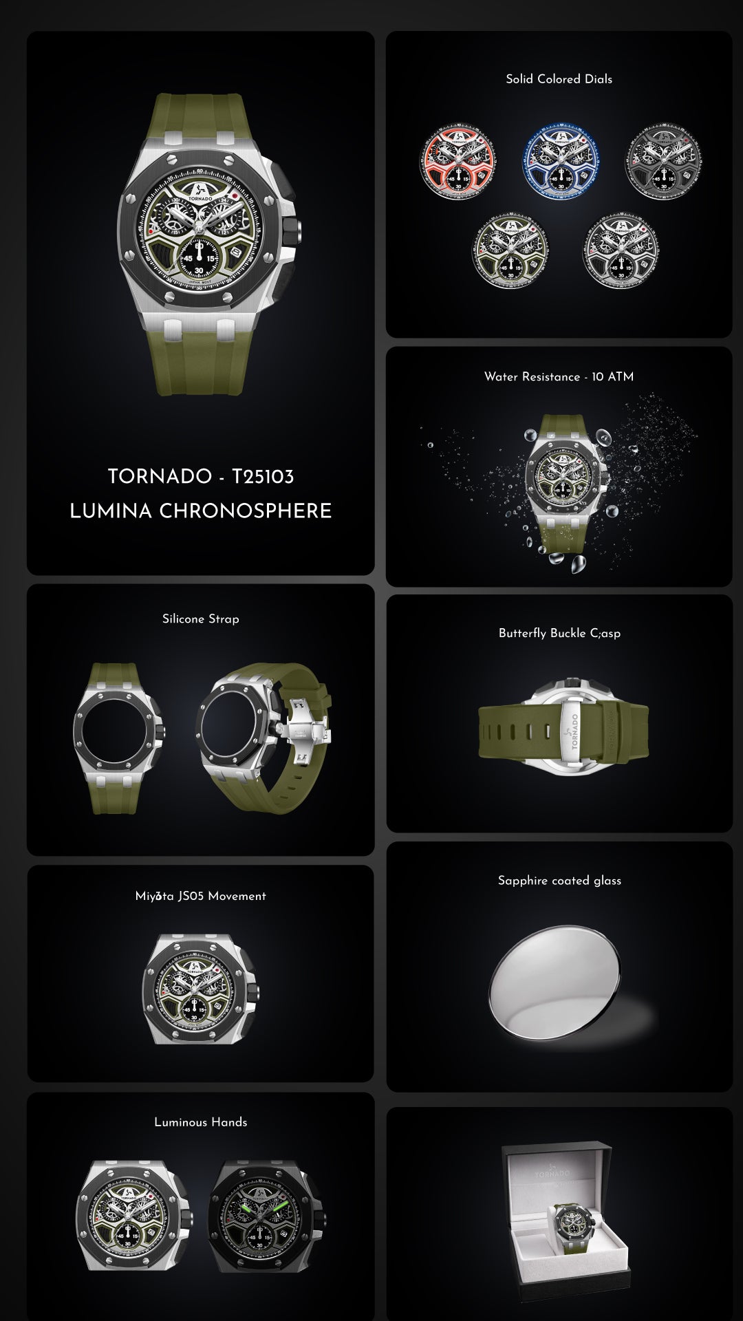 TORNADO Men's Chronograph Gun metal with Black Dial Watch - T25103-XSBXB
