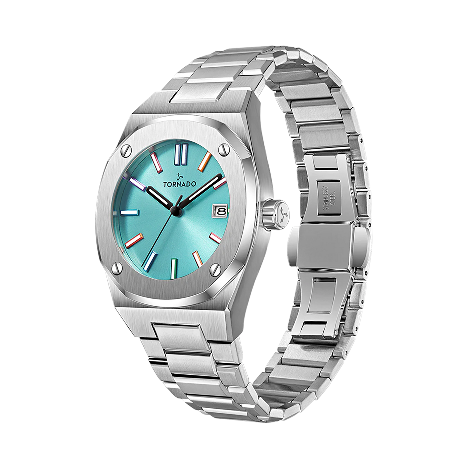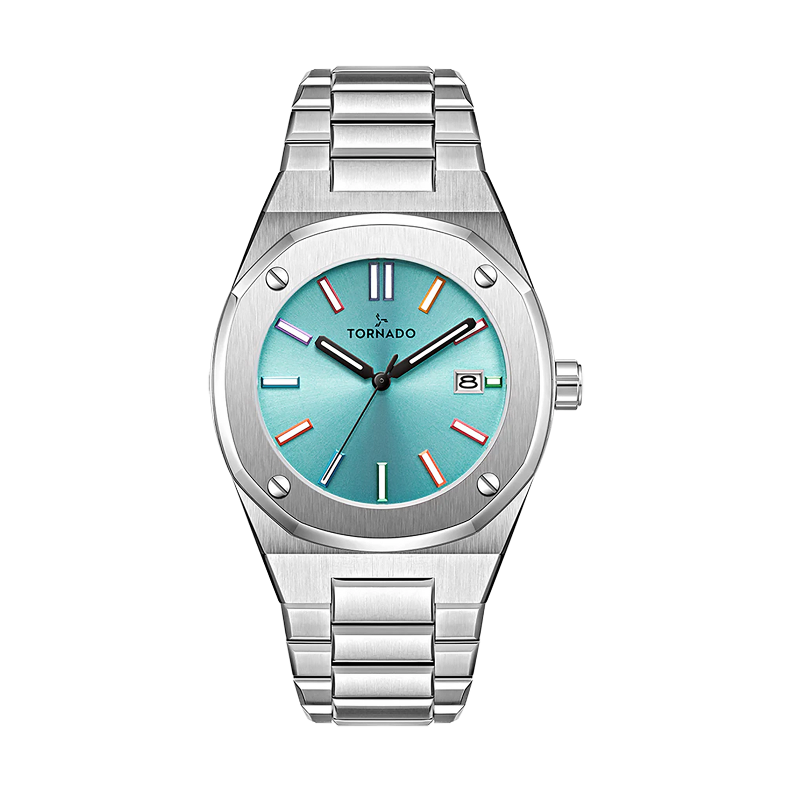 Tornado Aurora Twilight Men’s Watch with blue dial, silver case and strap. Japan 2317 movement, sapphire coated glass. 10ATM water resistant. 3-year warranty included.