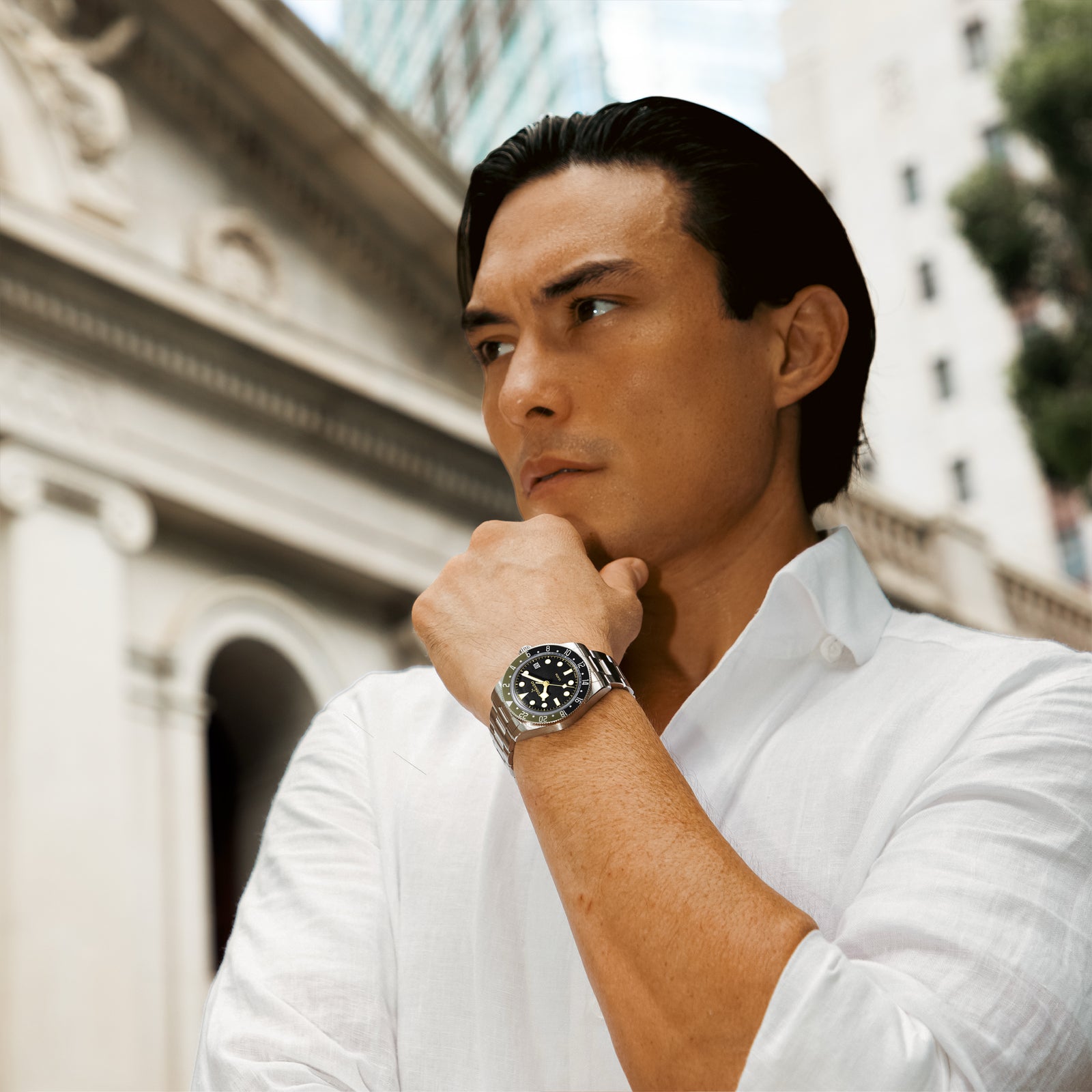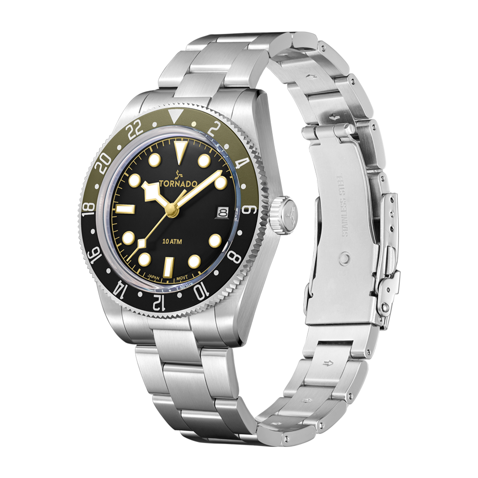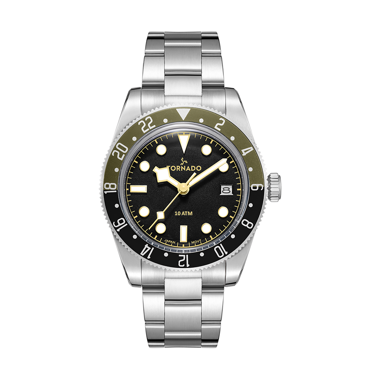 Tornado Lumina Date Just Men’s Watch with black dial, silver case, and strap. Japan 2315-3H movement, sapphire coated glass. 10ATM water resistant. 3-year warranty included.