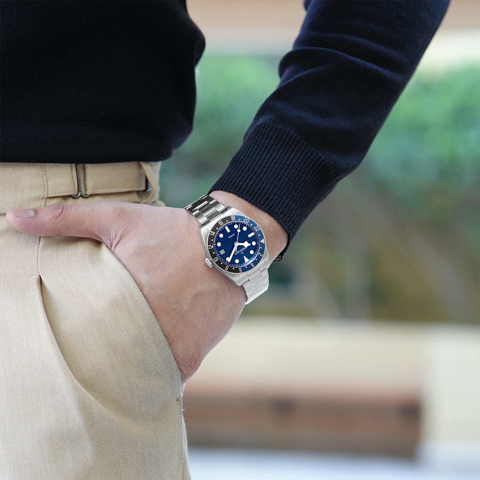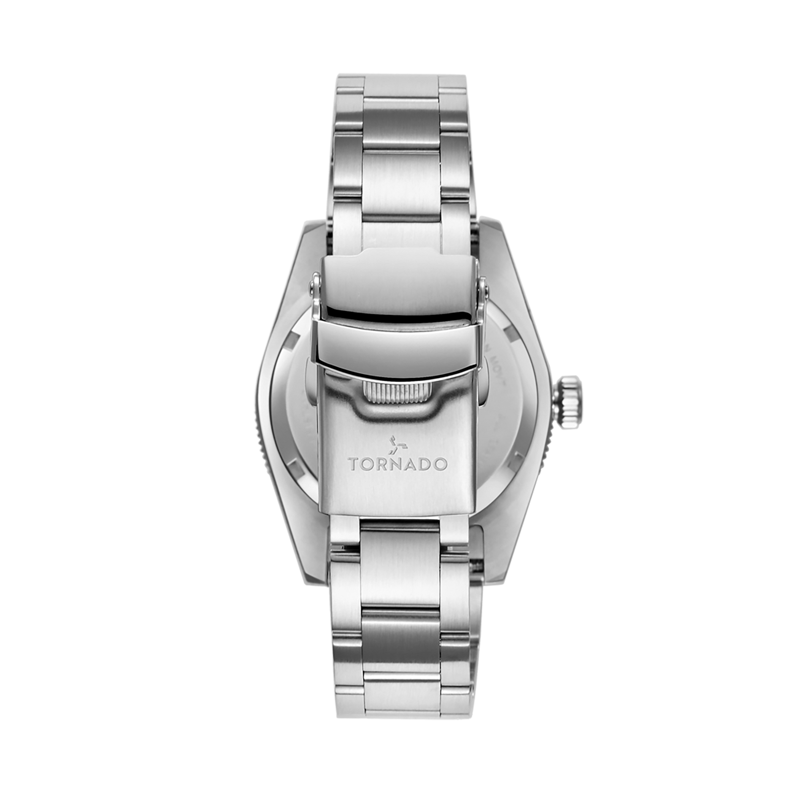 Tornado Lumina Date Just Men’s Watch with blue dial, silver case, and strap. Japan 2315-3H movement, sapphire coated glass. 10ATM water resistant. 3-year warranty included.