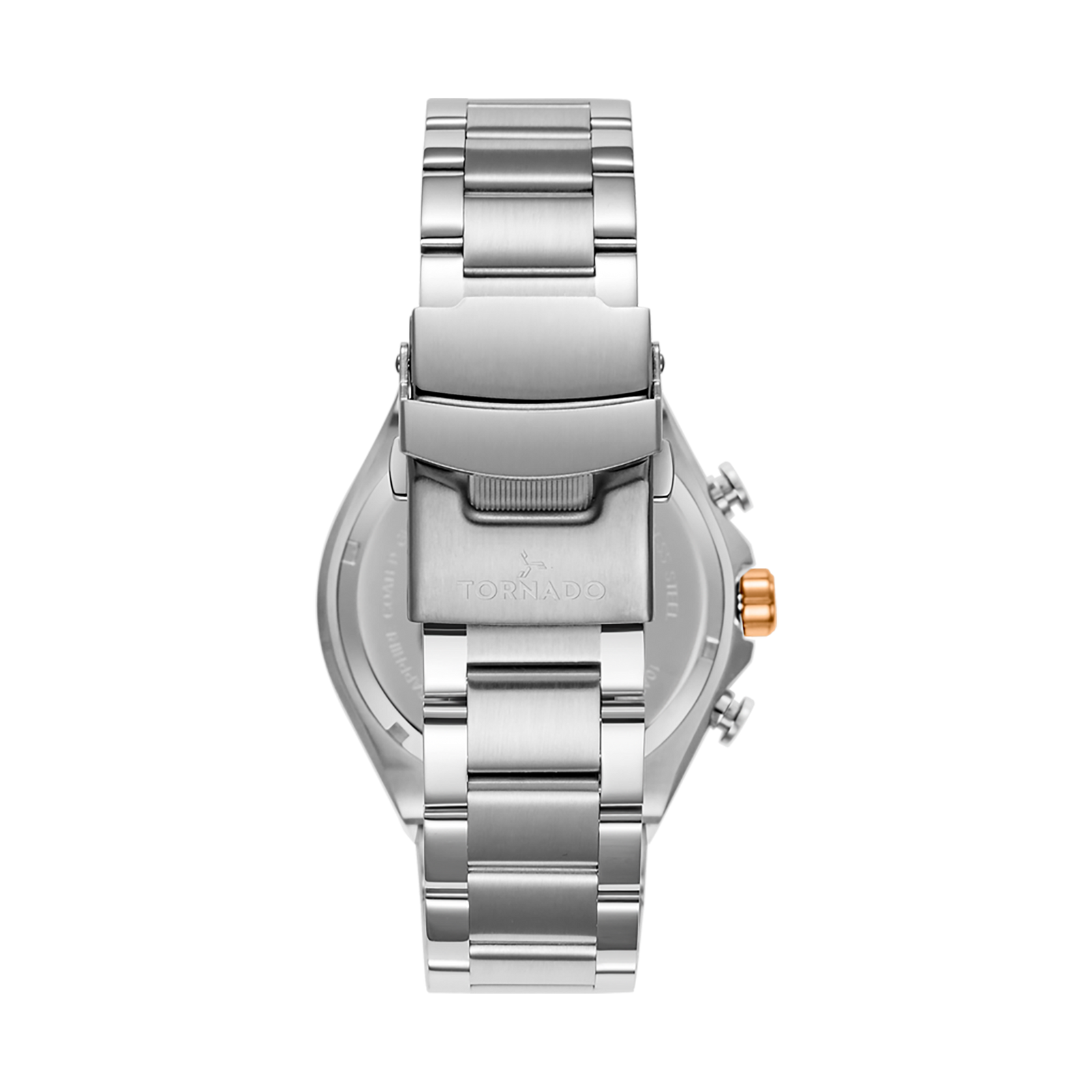 Tornado Strellar X Men's Watch with green dial, silver/rose gold case, and silver strap. JP25 multi-function movement, sapphire coated glass. 10ATM water resistant. 3-year warranty included.