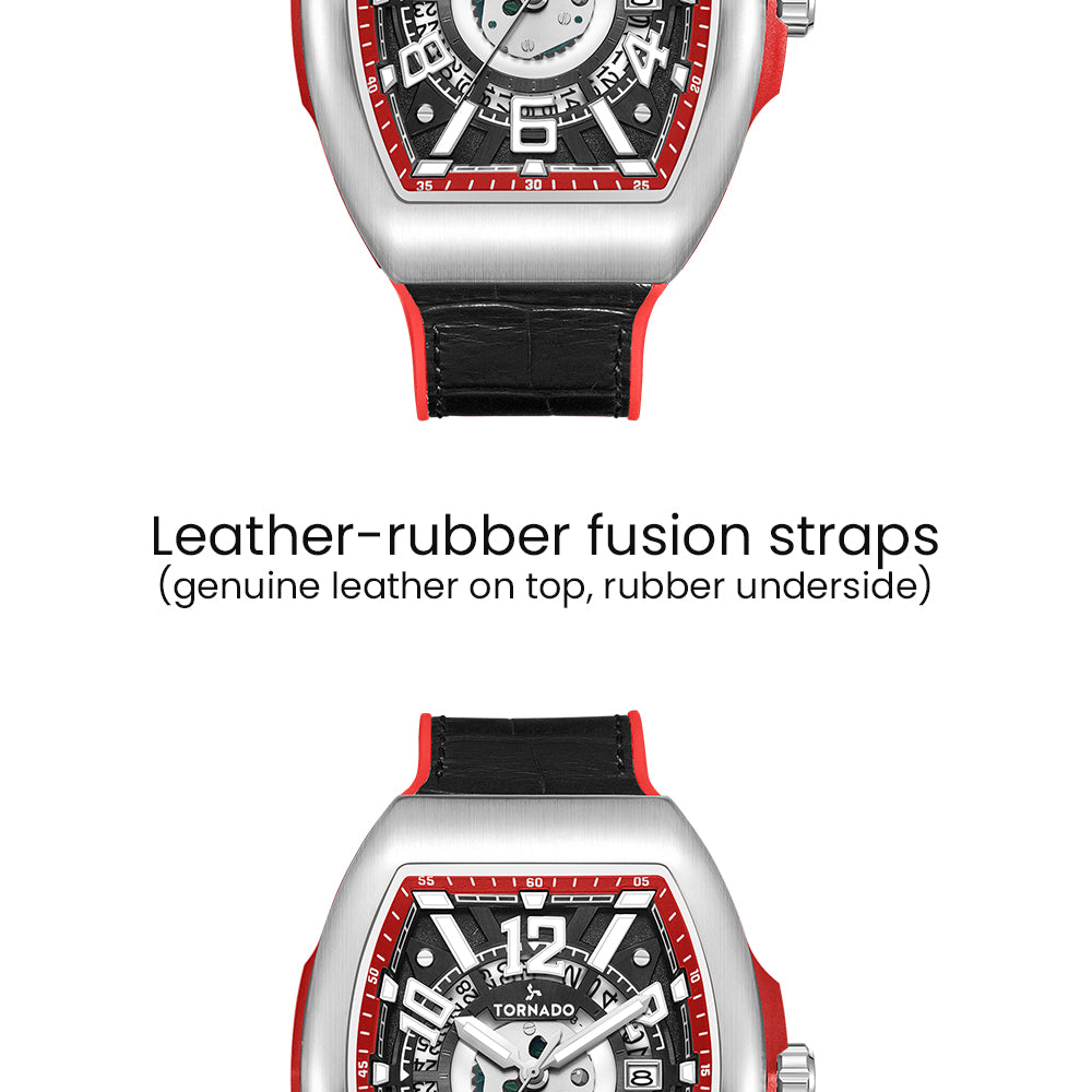 Leather-Rubber Fusion Straps (genuine leather on top, rubber underside)