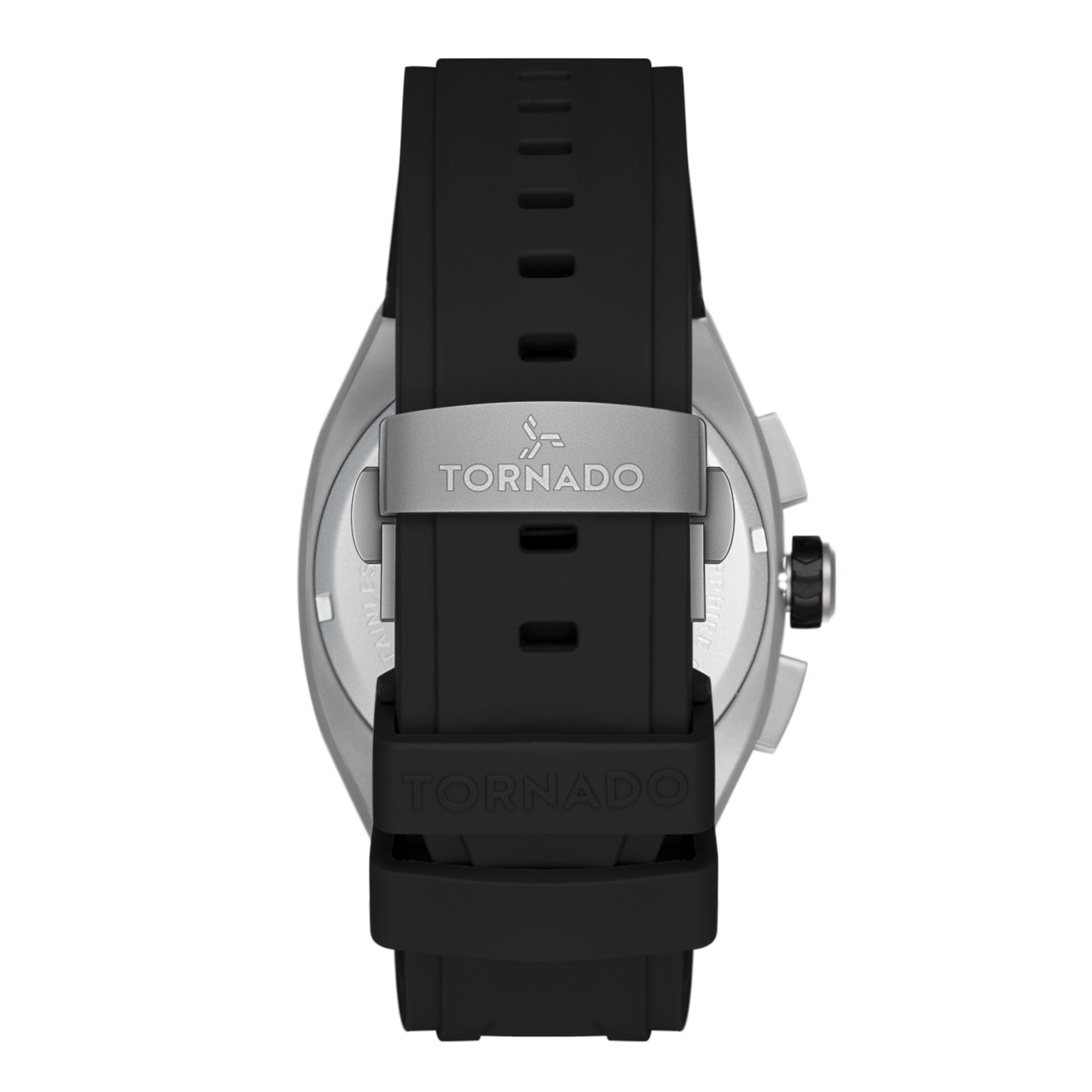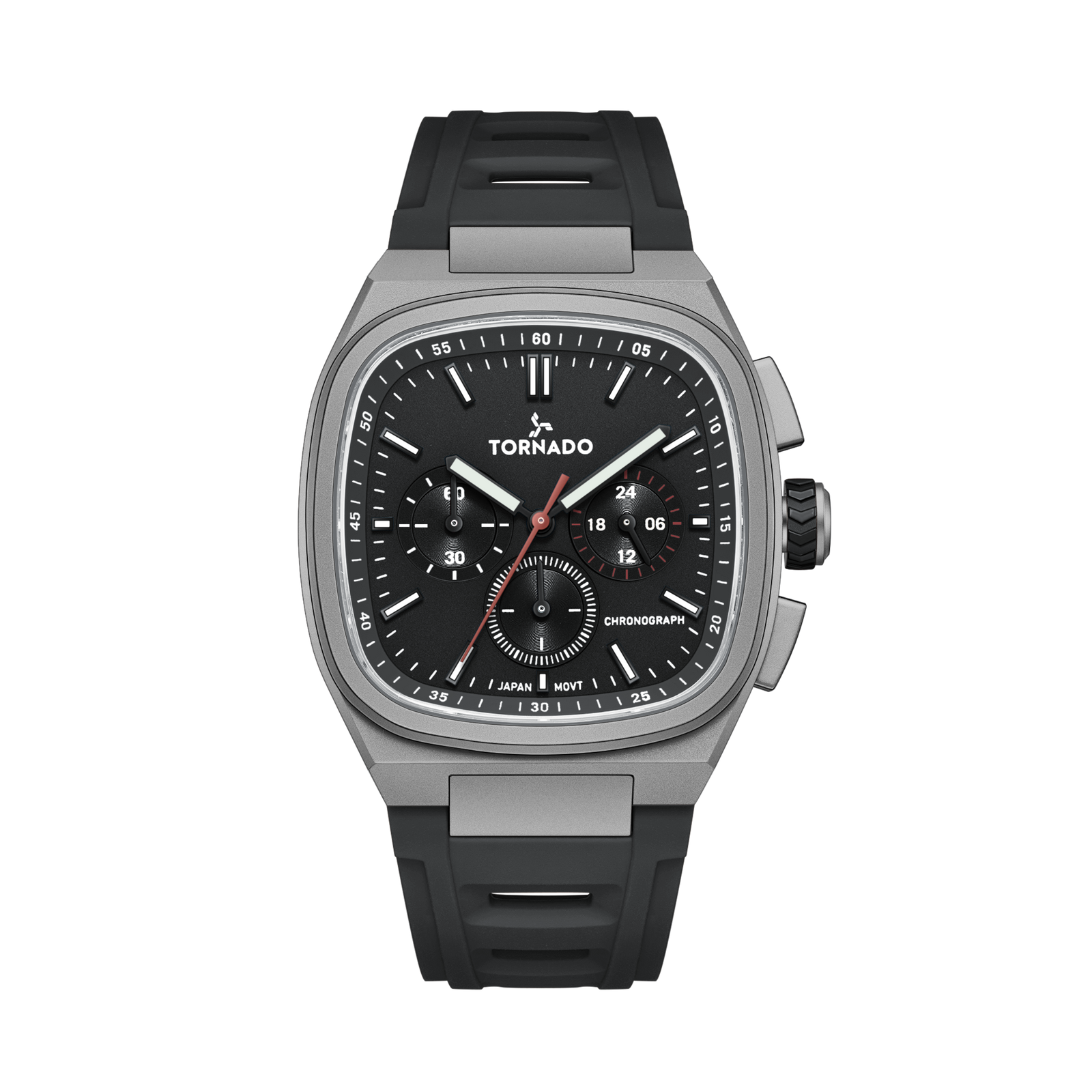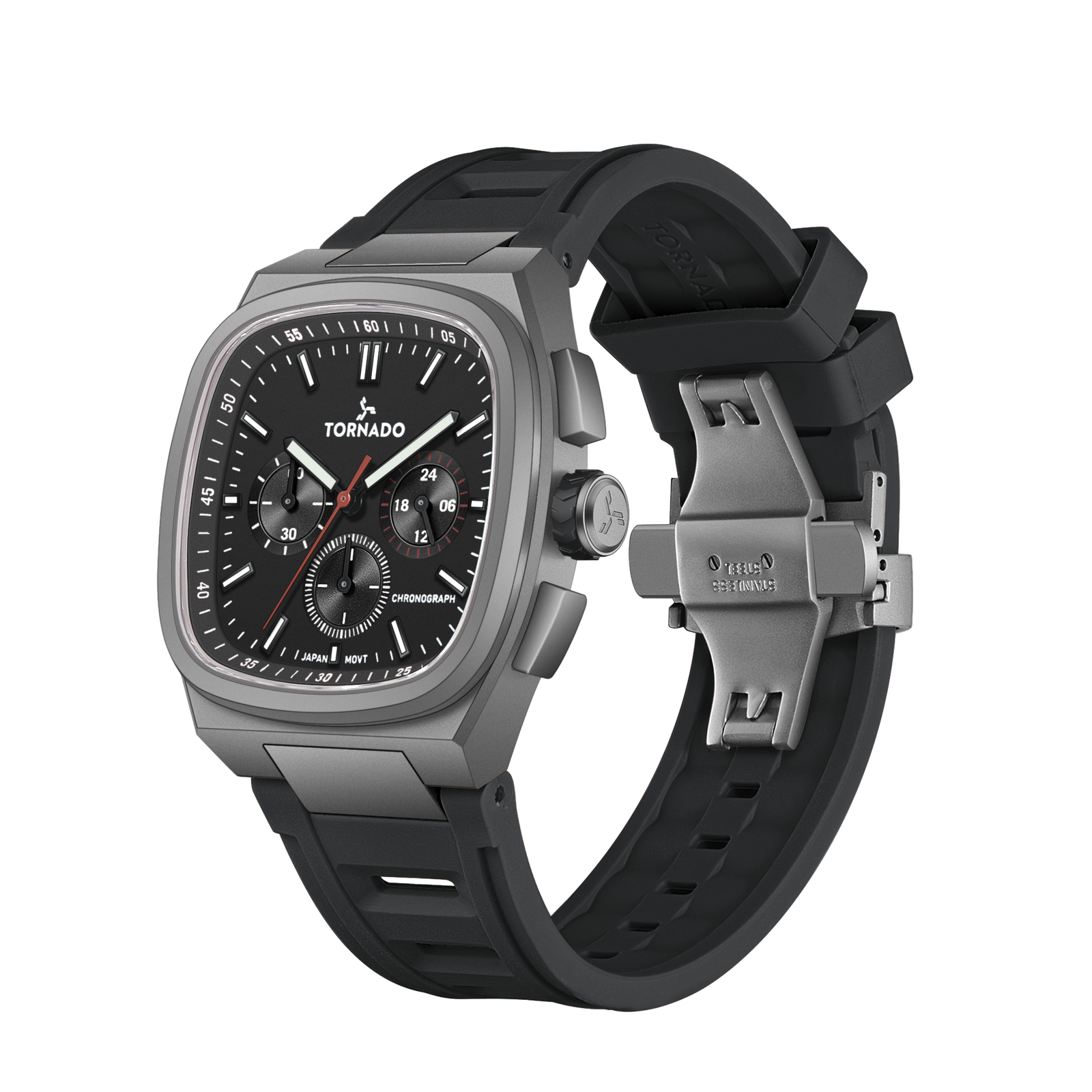 This Aristocrate variant brings a sharp, purposeful aesthetic to a solid mechanical backbone. Its 42 mm gunmetal case is crafted from 316L stainless steel with a sand-blasted finish, reinforced with a scratch-resistant coating. The deep black dial anchors the design, and is protected by Sapphire glass. The black rubber strap complements the build’s utilitarian look, and secures with a butterfly clasp.