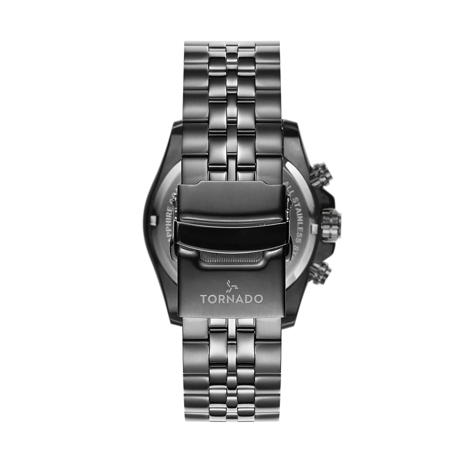 Tornado Celestia Chrono Men's Chronograph Watch with blue dial, gunmetal case and strap. Japan Quartz movement, sapphire coated glass, 10ATM water resistant. 3-year warranty included.