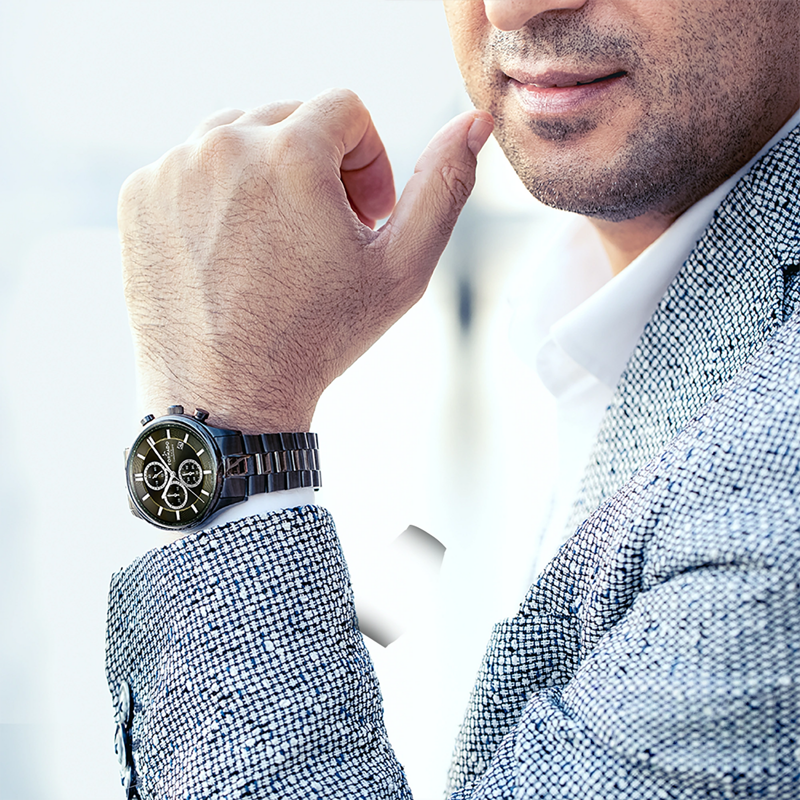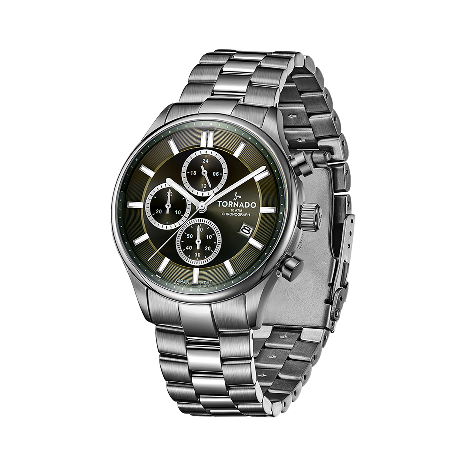 Tornado Celestia Elite Men's Chronograph Watch with green dial, gunmetal case and strap. Japan Quartz movement, sapphire coated glass, 10ATM water resistant. 3-year warranty included.