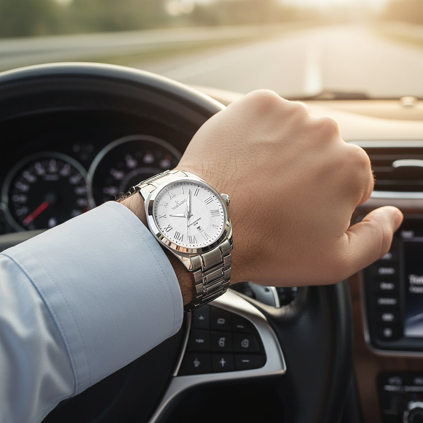 Tornado Celestia Classic Men’s Analog Watch with white dial, silver case and strap. Japan Quartz movement, sapphire coated glass, 10ATM water resistant. 3-year warranty included.